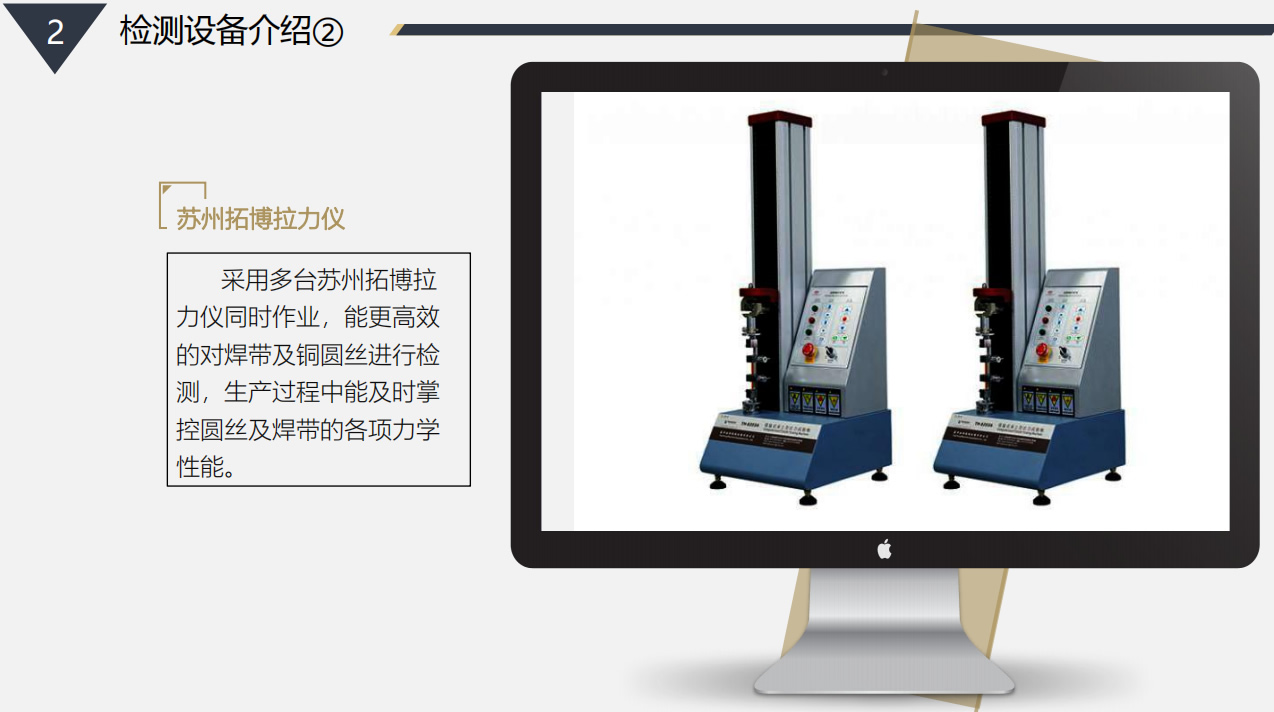 精密電阻測試儀:用來檢測銅絲及焊帶的電學性能,從原材料到成品,每一步都能及時掌控產品的電阻值。