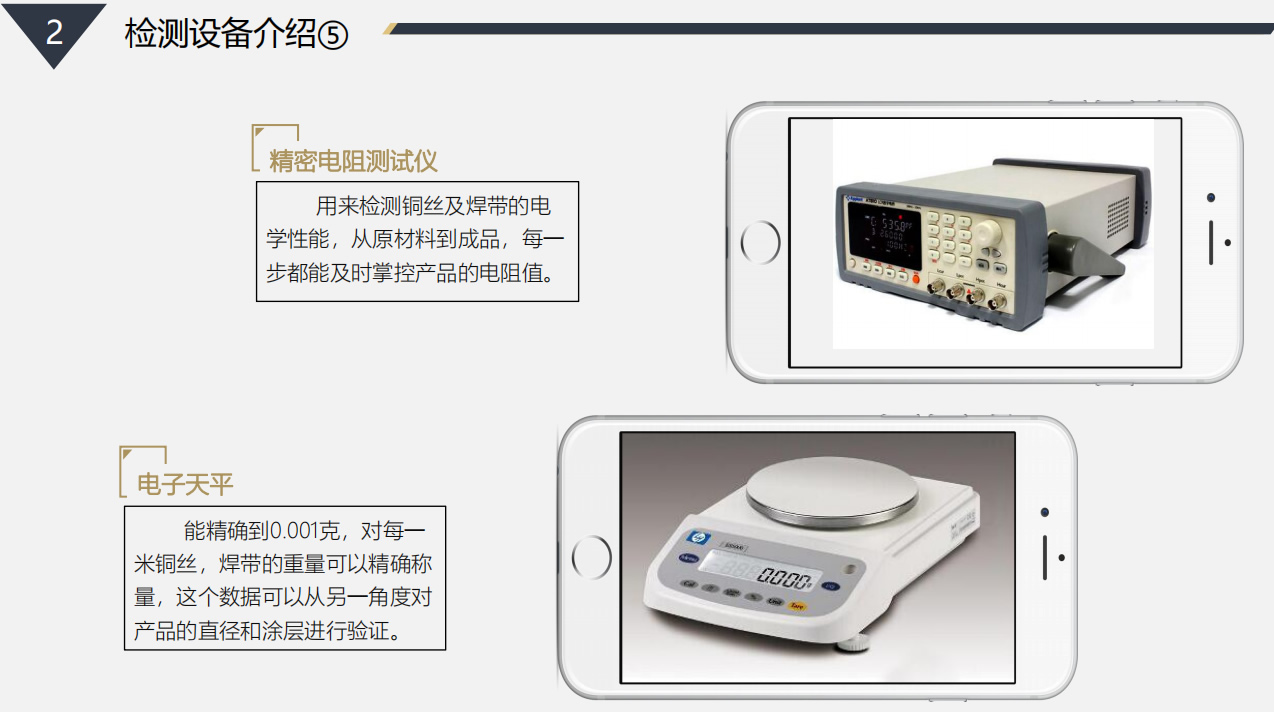 電子天平:能精確到0.001克,對每一米銅絲,焊帶的重量可以精確稱量,這個數據可以從另一角度對產品的直徑和涂層進行驗證。